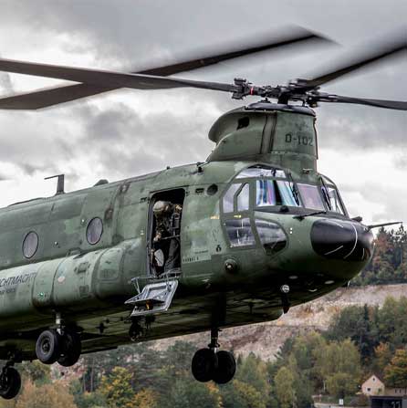 De CH-47 Chinook is een middelzware transporthelikopter. De helikopter met de karakteristieke tandemrotor is uitermate geschikt voor het snel vervoeren van grondtroepen, materieel, wapens, proviand en andere voorraden naar het slagveld. Het toestel staat inmiddels wereldwijd bekend als multifunctioneel militair werkpaard.